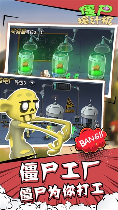 2、经营模拟,将捕捉的僵尸榨汁处理,生产不同风味果汁销售,升级设备、扩建你的工厂。