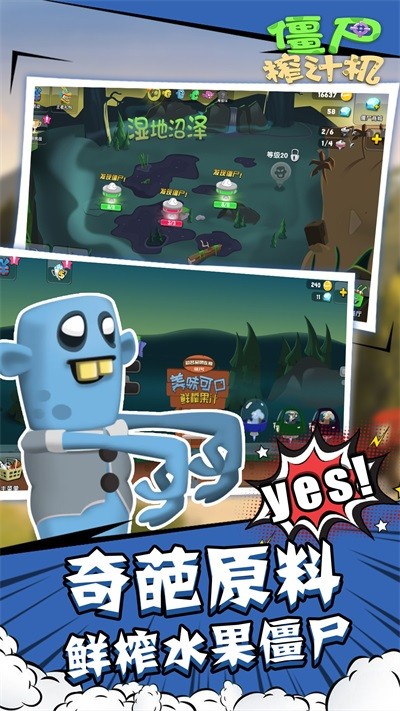 换一换僵尸榨汁机中文版是一款将冒险经营模拟游戏,玩家化身外星果汁店老板,驾驶装备着捕获装置的飞船,穿梭于沼泽的泥泞、荒漠的戈壁、冰原的酷寒等风格迥异的外星生态中,追捕多种特性鲜明的僵尸捕获的僵尸将被送入地下工厂,经榨汁、调配制成风味各异的果汁,销往星际市场。玩家需根据市场供需调整产品线,升级榨汁机、扩建厂房,同时采购闪电枪、热能陷阱等装备,提升捕捉效率,从初创果汁店老板成长为星际饮品大亨。充满趣味的过程,带给你诸多的惊喜与乐趣,等你来这里畅玩。