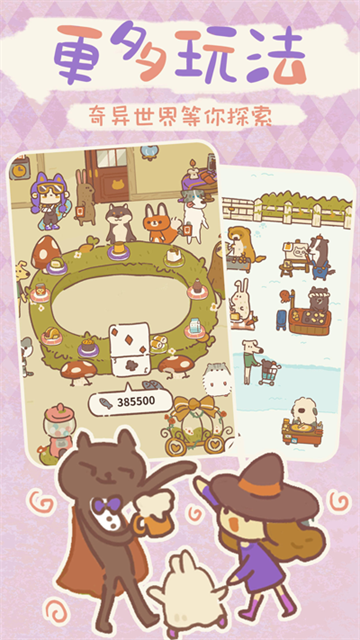 1、餐厅经营玩法,研发新菜谱、添置厨房设施、招聘猫咪员工,提升餐厅的服务能力与知名度,吸引更多客人前来。