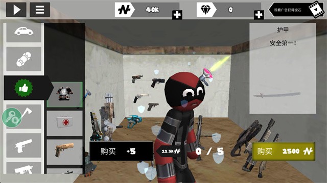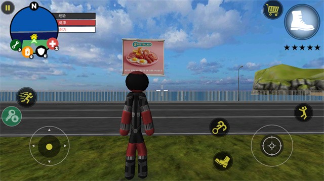 1、进入游戏之后,控制一名火柴人开始冒险。滑动左边轮盘可以控制角色移动,点击右边按钮可以进行攻击。