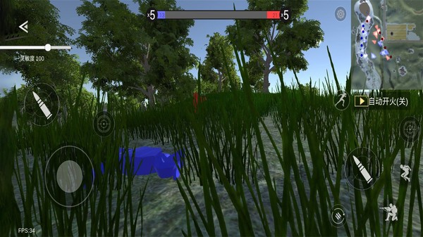 4、进入游戏后即可操作了,左边轮盘控制方向,右边轮盘可以控制开枪、趴下、蹲下等。