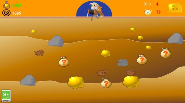 3、游戏加入宠物伙伴,如携带磁铁的机械鸟可自动吸附附近金币,或挖掘速度加快的鼹鼠。