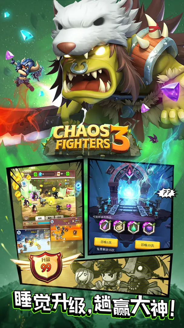 3、获得各种炫酷的技能特效与强力装备,成长为威名远扬的传奇英雄。
