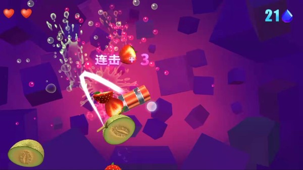 3、无需水果排成直线,只要刀速足够快,即使划出弧线也能实现连击,提升切割效率,得分多多。