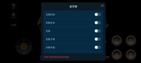 3、操控摇杆进行移动,A是攻击,C是扔手雷,B是跳跃。