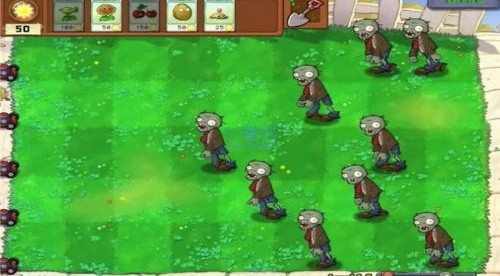 3、玩家需要在空荡的花园里,种植植物,来抵御右边入侵的僵尸。