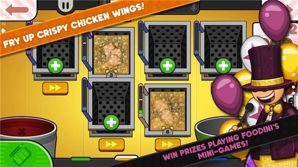 3、用赚取的金币升级油炸锅等设备,缩短烹饪时间、提升出餐效率,应对高峰期订单压力。