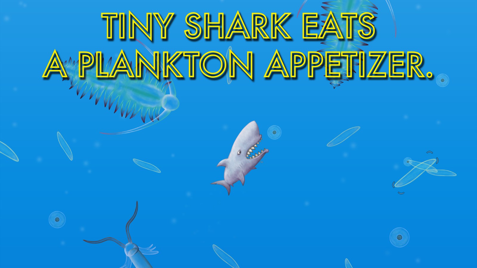 2、通过吞噬积累能量,触发形态进化,从普通鱼类逐步解锁鲨鱼等形态,解锁新的技能。