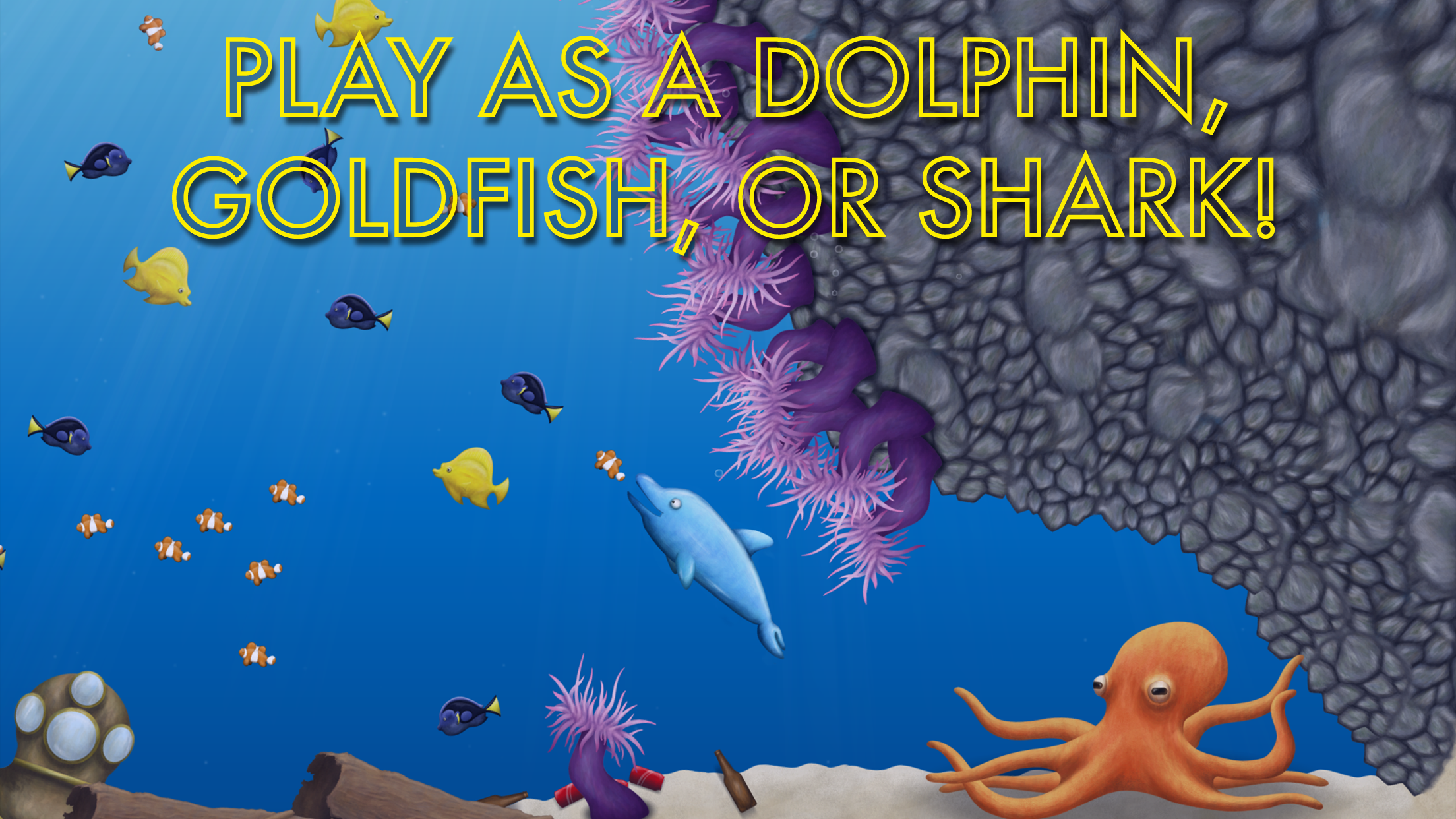 1、强调敏捷操作,玩家需操控海豚在复杂环境中躲避追捕,同时寻找吞噬目标。