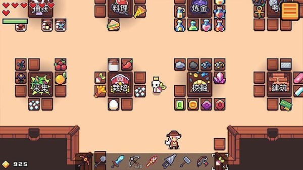 2、升级自己的建造工具,提升资源收集效率,不断在游戏中变得强大。