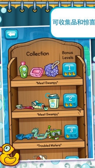 2、水流覆盖小黄鸭会获取在左上角,小黄鸭就相当于关卡的星级。