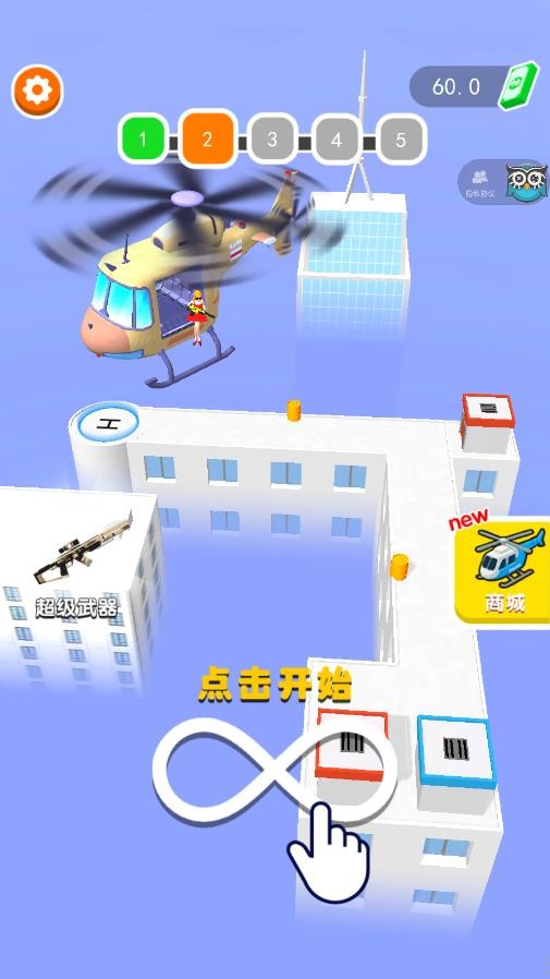 2、通过完成任务或积累金币解锁强大的武器与飞行器,新枪械具备更快射击速度。