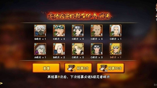 3、各种类型的火影角色库以及丰富多样的抽卡资源,带来无尽新鲜感。