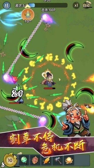 1、收集更多的道具来提升转刀的伤害输出,帮助你不断消灭出现的怪物。