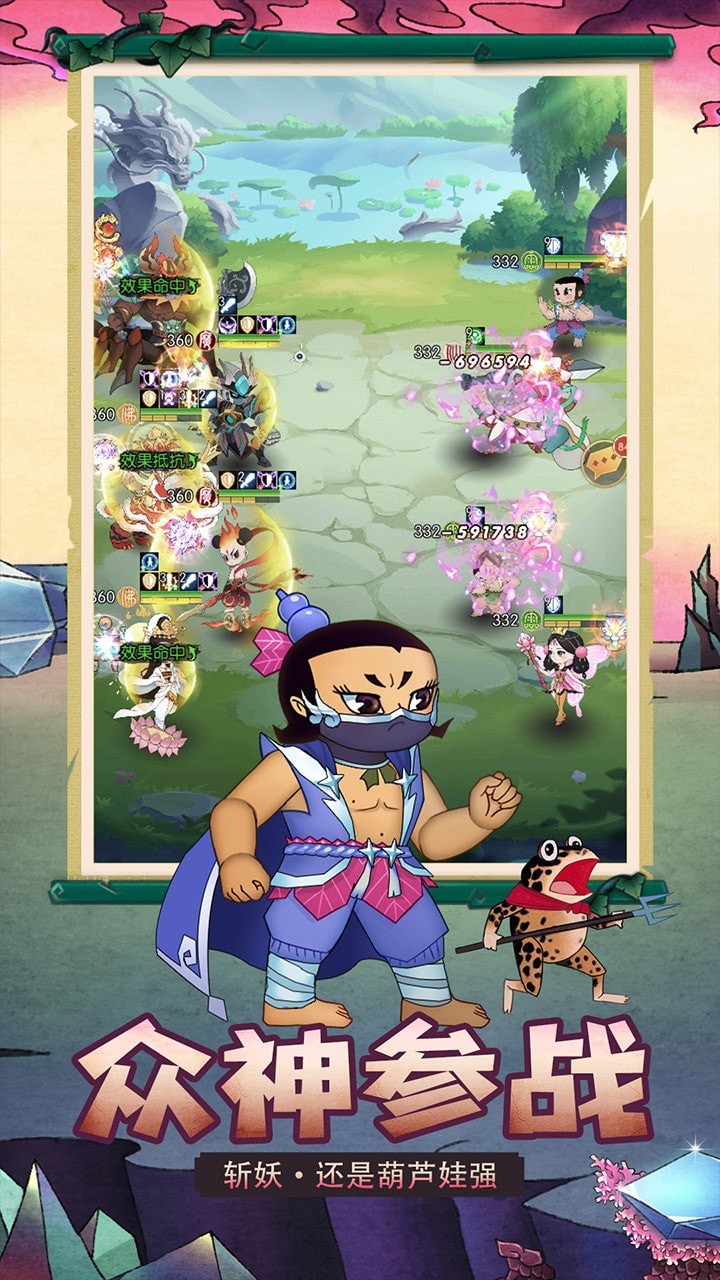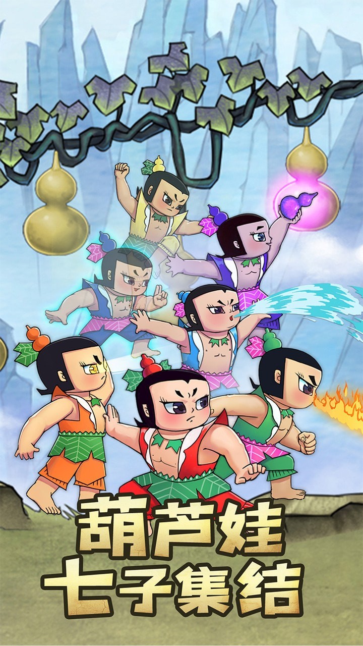 1、收集培养葫芦兄弟,通过升级、进阶、装备等方式提升战力,解锁全新技能。