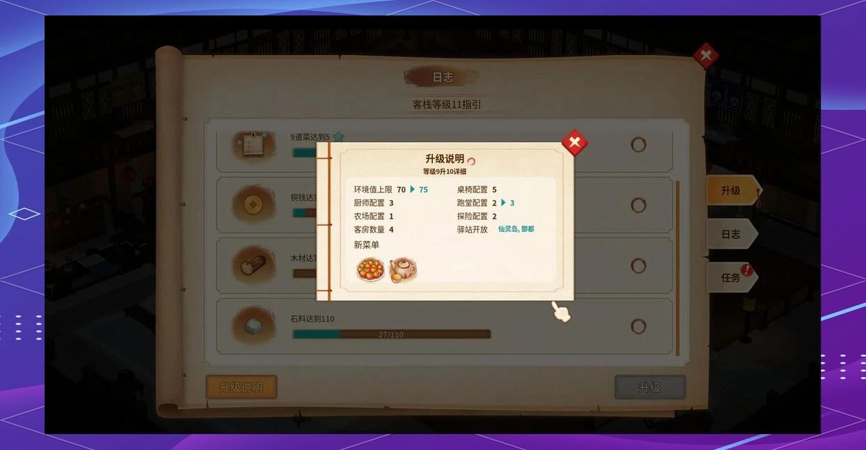 3、根据客人偏好调整菜单,优先制作高利润菜品,或通过农场种植获取稀有食材。