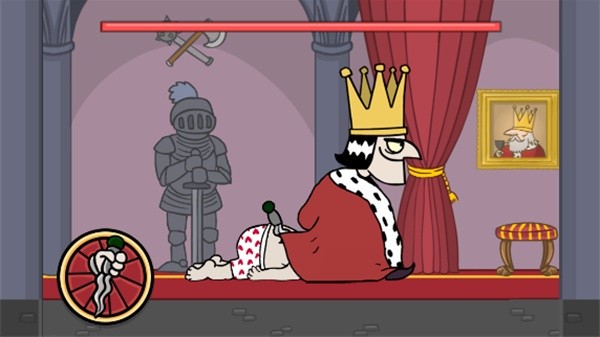 2、当角色走进国王时,长按屏幕,当上面的蓄力条满时,角色挥刀刺向国王。