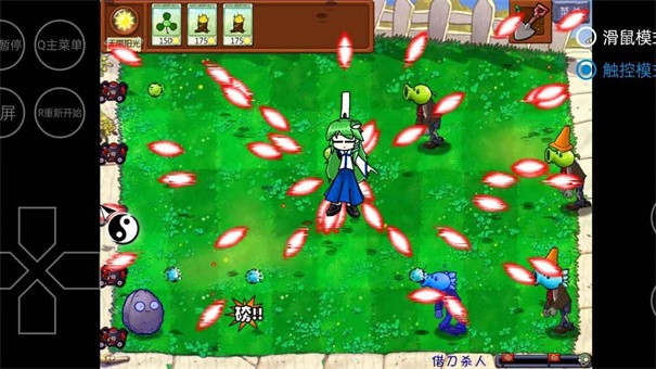 换一换植物大战僵尸东方版是由B站UP主七白蒜蒜Koliln制作的经典塔防同人模组,将传统植物替换为博丽灵梦、雾雨魔理沙、琪露诺等东方人气角色,打造出二次元与塔防碰撞的全新体验。每个角色技能贴合原作设定,攻击特效、动作细节高度还原,让东方粉丝在塔防中体验角色魅力,僵尸会释放弹幕攻击角色,植物大战僵尸东方版需操控角色擦弹躲避,连续完美闪避触发灵击模式,击落僵尸弹幕还能获取额外阳光,Combo连击触发信仰爆发实现全局加速,让静态塔防变成动态弹幕战!