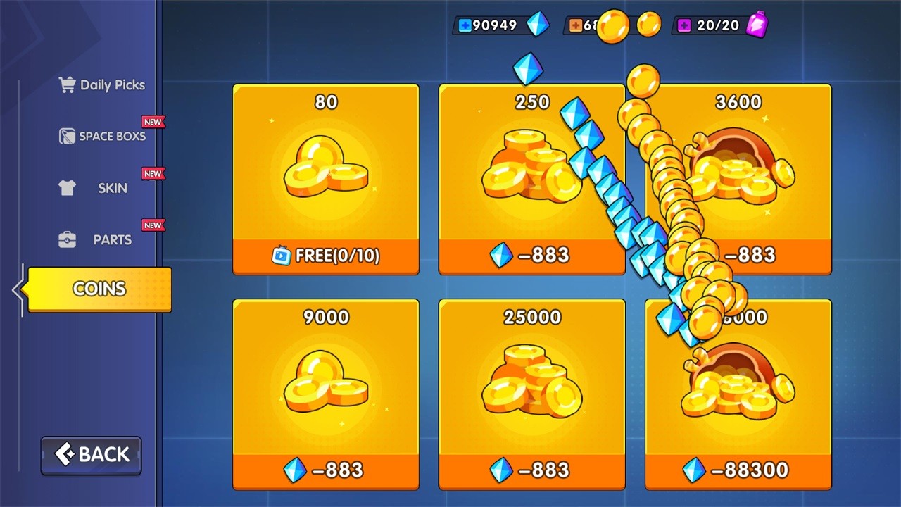 3、提供丰富的部件升级选项,包括引擎、推进器等,玩家可根据赛道特性调整飞船性能。