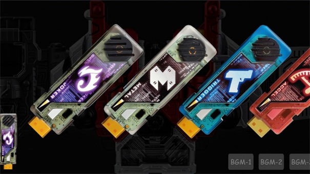 2、选择喜欢的盖亚记忆体!选好记忆体插到腰带上,选择对应的搭配组合可以变身成对应的形态;