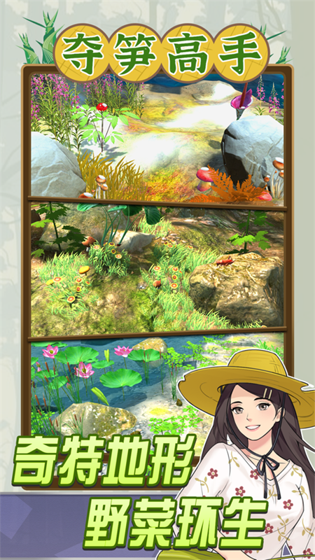 夺笋高手是一款兼具文化底蕴与休闲质感的模拟经营游戏,随游戏进度,玩家可用金币解锁新山林地图,新地图有更稀有物产与更高挑战。同时解锁高级工具,提升采集效率、降低体力消耗,收集全品类山货可解锁图鉴,领取成就奖励,还能触发隐藏剧情与 NPC 互动。此外有每日任务、限时活动,完成可获额外收益与限定道具,丰富长期玩法内容。
