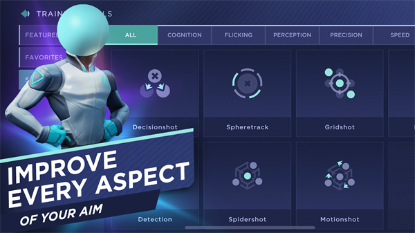 2、内置超800种专业训练模块,覆盖跟枪、定位、预瞄、反应、追枪等全维度能力。