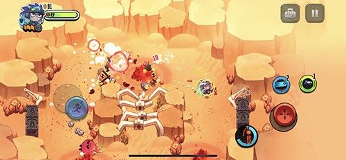 3、精美手绘卡通画风搭配流畅物理特效,色彩饱和明亮,爆炸与弹幕效果华丽却不刺眼,视觉享受极佳。