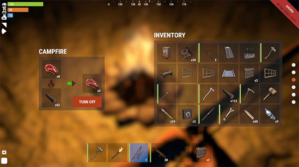 1、初期敲石头砍树木建简易庇护所,猎杀动物或偷袭落单者获取第一桶资源。