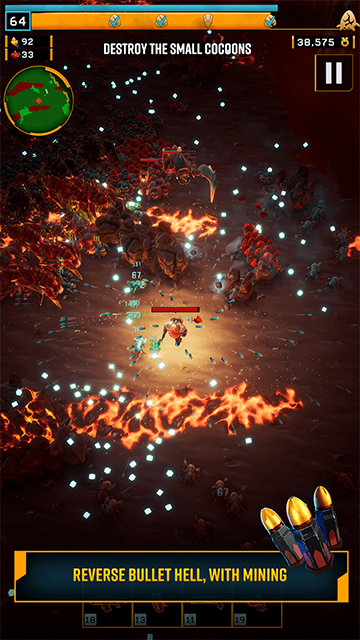 1、以吸血鬼幸存者式自动射击为核心,玩家需在随机生成的洞穴中采集黄金、硝石等资源。