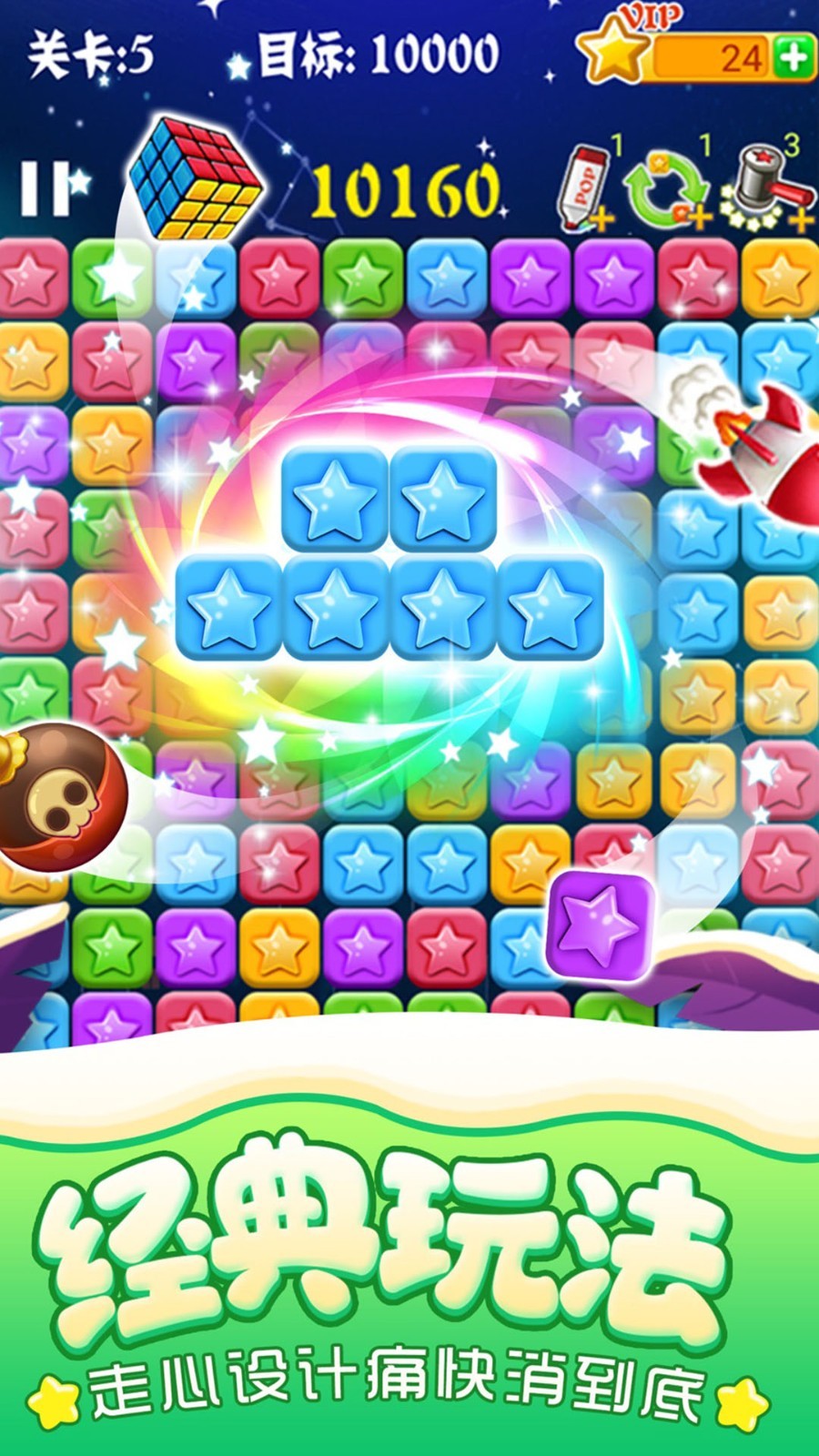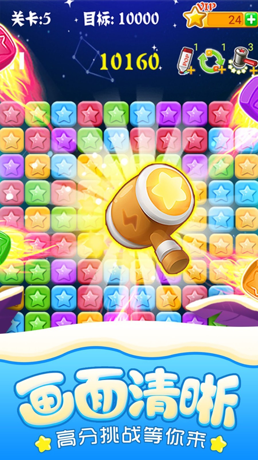 2、视听体验治愈解压:清新星空画风,绚丽烟花式消除特效,搭配轻快悦耳音效,解压感十足。