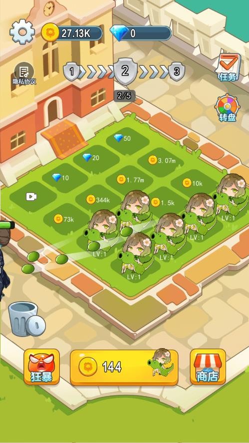 1、玩家需根据关卡地形和敌人类型自由摆放植物萌娘,形成交叉火力网,应对入侵的敌人。