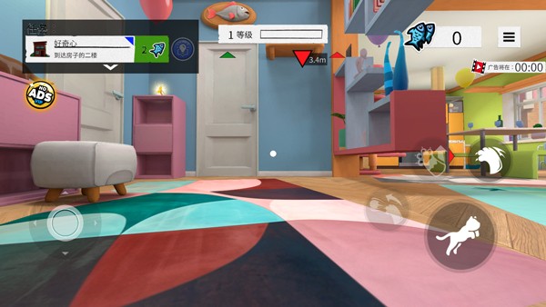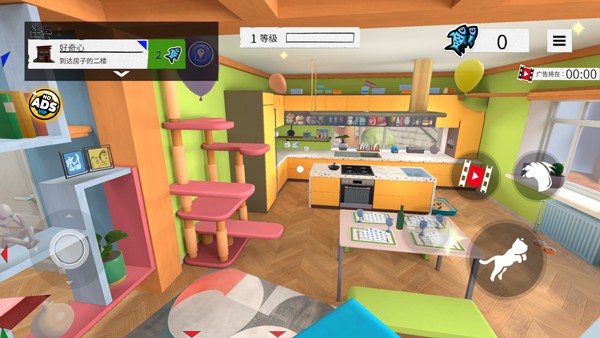 1、在房间、厨房、花园等地图中随意跑动跳跃,用爪子推动或拍落任意物品,物品碎裂与滚动效果真实。