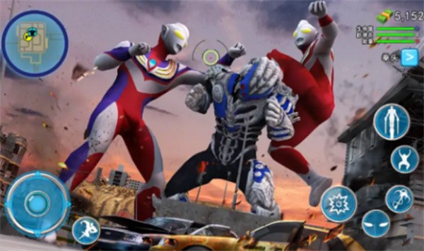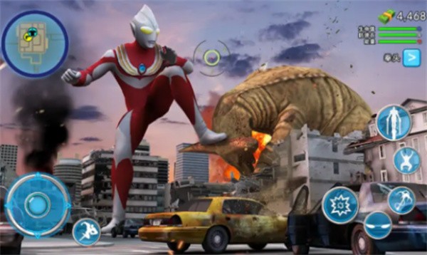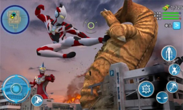 3、左下角是控制奥特曼的方向,右下角可以释放动作技能。