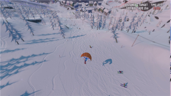 2、3D引擎打造立体雪景,地形层次丰富画面质感细腻,滑行过程视觉观感舒适流畅。